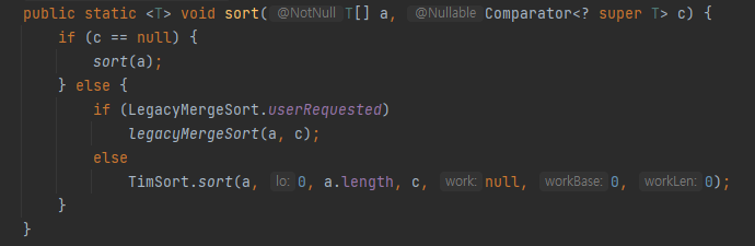 ์ ์ฌ์ง์ Arrays ํด๋์ค์ sort ๋ฉ์๋์ ๋๋ค. ์กฐ๊ฑด๋ฌธ์ ๋ณด์๋ฉด ์ ๋ ฌ์๋ LegacyMergeSort๋ TimSort๋ฅผ ์ฌ์ฉํ๋ ๊ฒ์ ์ ์ ์๋๋ฐ์. LegacyMergeSort์ ๊ฒฝ์ฐ API๋ฅผ ์ดํด๋ณด๋ฉด ์ถํ ์ ๊ฑฐ๋ ์์ ์ด๋ผ๊ณ ํฉ๋๋ค. ์ฆ, ๊ผญ LegacyMergeSort ๋ฐฉ์์ผ๋ก ํด์ฃผ์ธ์๋ผ๊ณ ์ฌ์ฉ์๊ฐ ์๊ตฌํ์ง ์๋๋ค๋ฉด TimSort ๋ฐฉ์์ ์ฌ์ฉํ๋ ๊ฒ์ ๋๋ค. TimSort ๋ฐฉ์์ ๋ํด์๋ ์ ์ ๋ฆฌ๋ ๊ธ์ ๋ท ๋ถ๋ถ์ ์๊ฐํ๊ฒ ์ต๋๋ค.