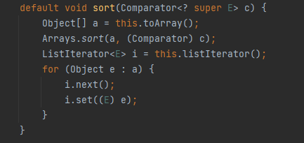 ์ ์ฌ์ง์ list ์ธํฐํ์ด์ค์ default ๋ฉ์๋ sort ๋ด๋ถ ์ฝ๋์ ๋๋ค. ์ธ์๋ก Comparator ๊ฐ์ฒด๋ฅผ ์๊ตฌํ๊ณ ์๋ค์! ์ ์ฝ๋์์๋ ํด๋น ๋งค๊ฐ ๋ณ์ ์๋ฆฌ์ null์ ์ธ์๋ก ๋๊ฒจ์ค ๊ฒ์ด๊ณ ์. ๋ํ ์ฝ๋๋ฅผ ํ ์ค์ฉ ์ดํด๋ณด๋ฉด Object ๋ฐฐ์ด๋ก ๋ณํํ ๋ค Arrays.sort ๋ฉ์๋๋ฅผ ํธ์ถํ ๊ฒ์ ๋ณผ ์ ์์ต๋๋ค.